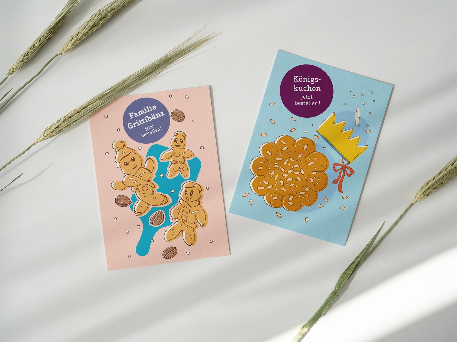 For the vegan bakery located in Zürich ran by the Enzian foundation, I created a set of pastel illustrations, used for flyers promoting seasonal products.