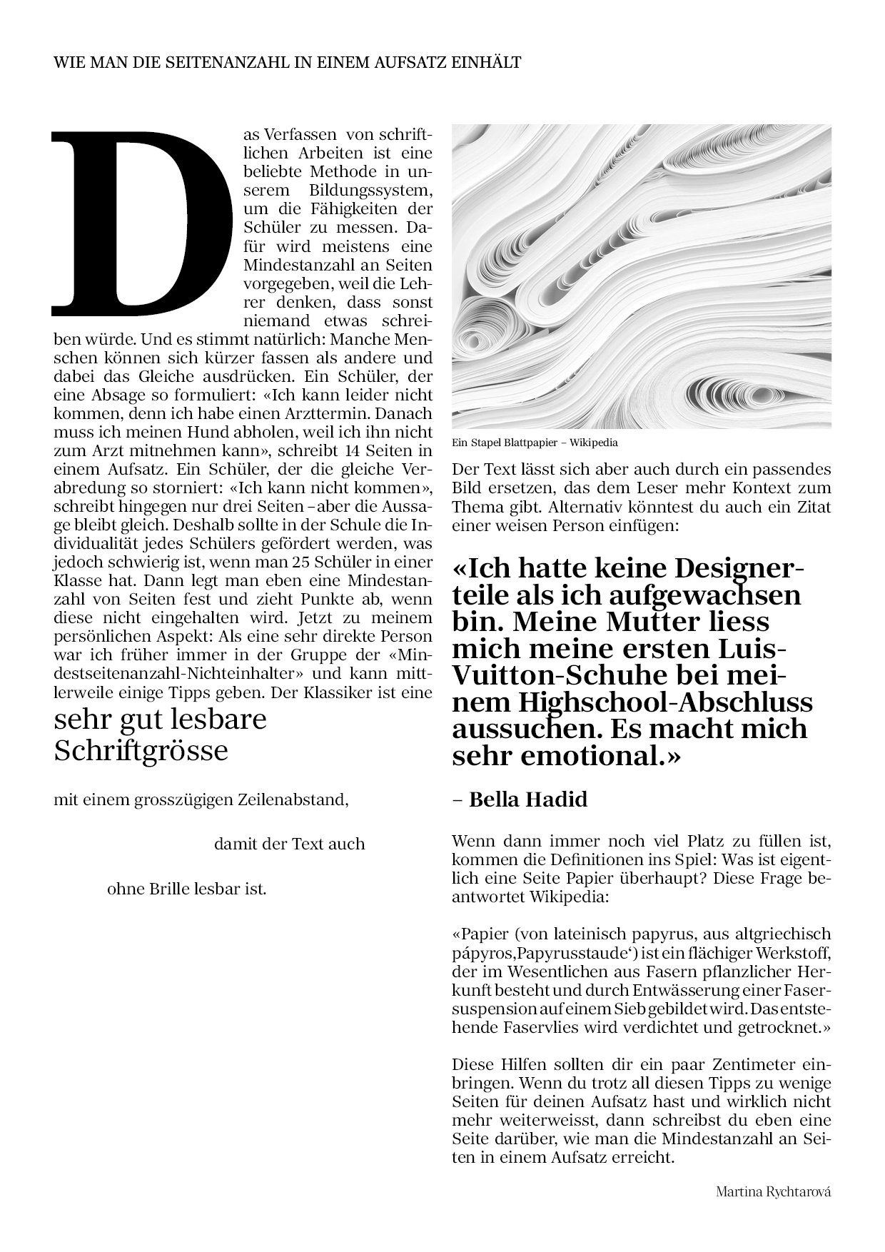 Für ein persönliches Projekt habe ich eine kurze Erzählung geschrieben, die auf kreative und witzige Weise den Kampf mit der Mindestanzahl an Seiten in einem Schulaufsatz beschreibt.