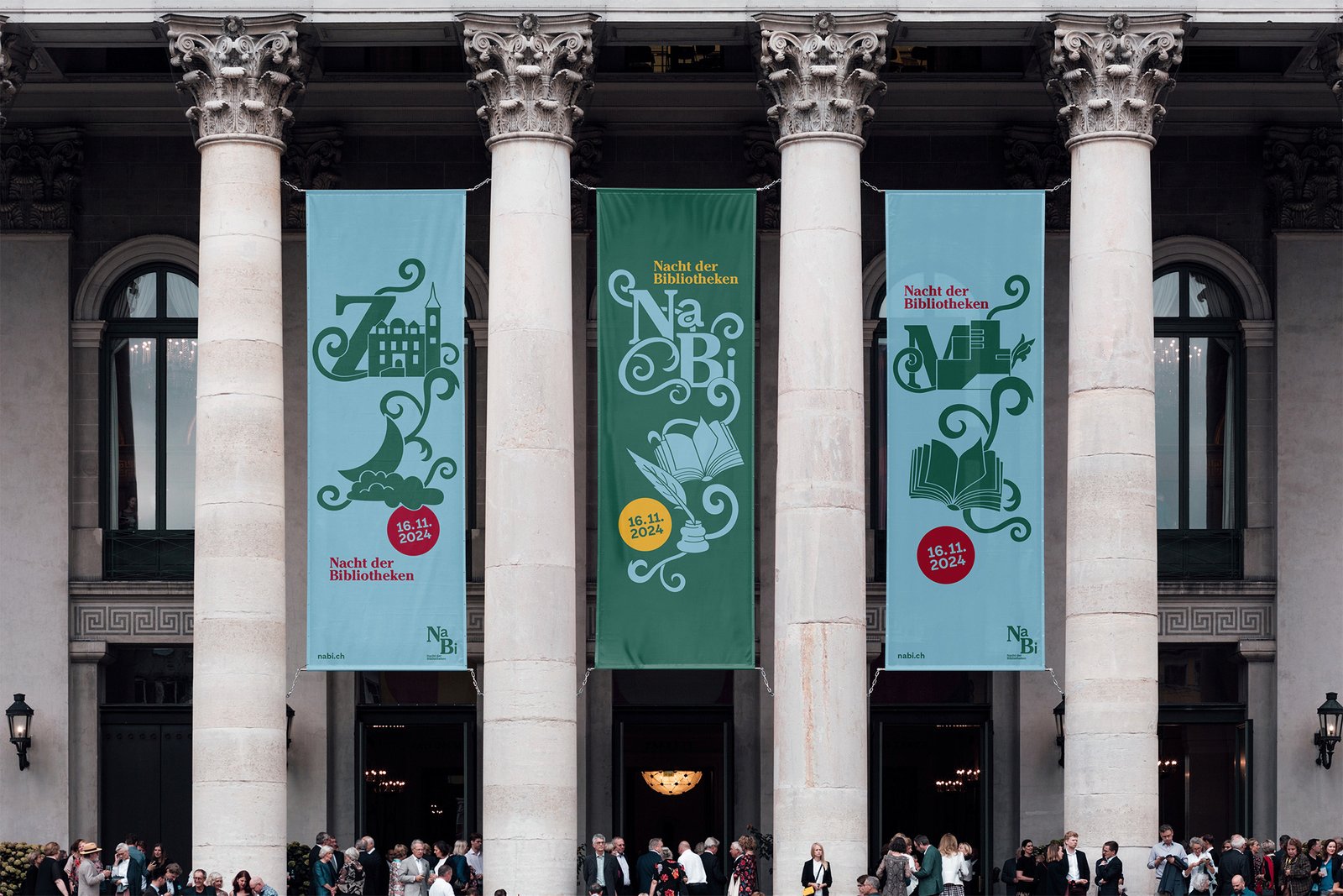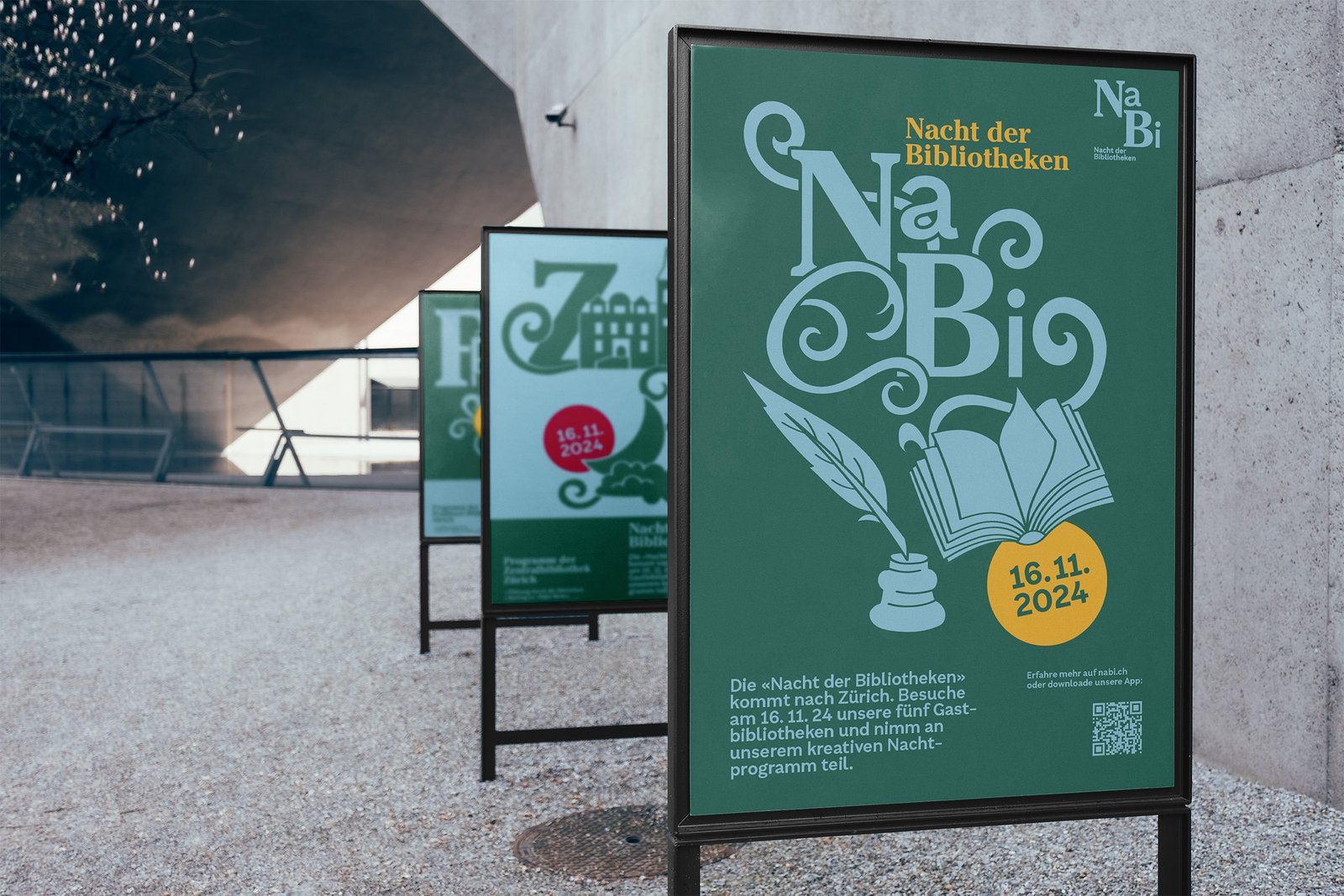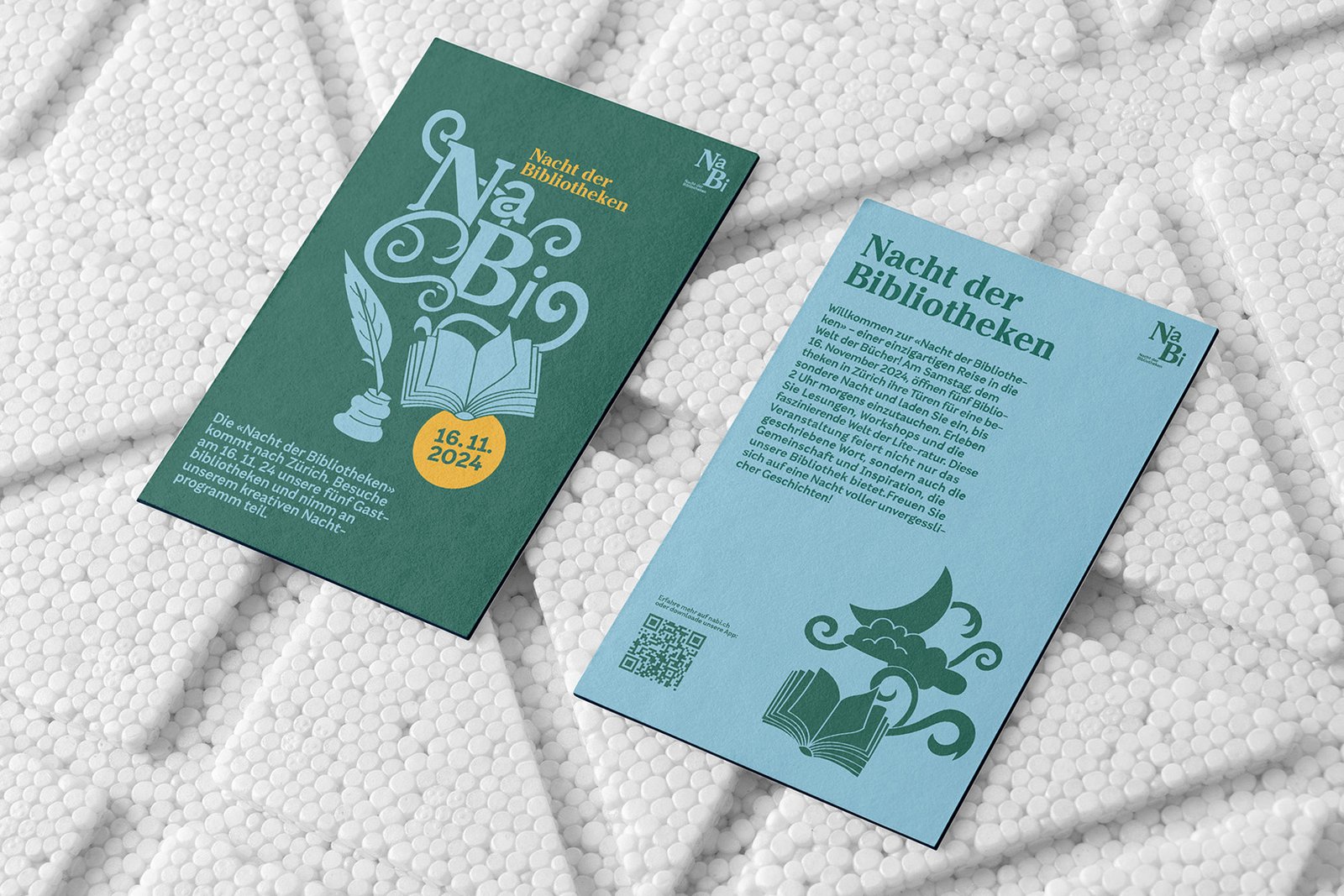 For the final project of my education, we were tasked to create a visual identity for an Event called “night of the libraries”, where five libraries in the city of Zürich open to the public during nighttime for different activities and presentations by swiss authors.